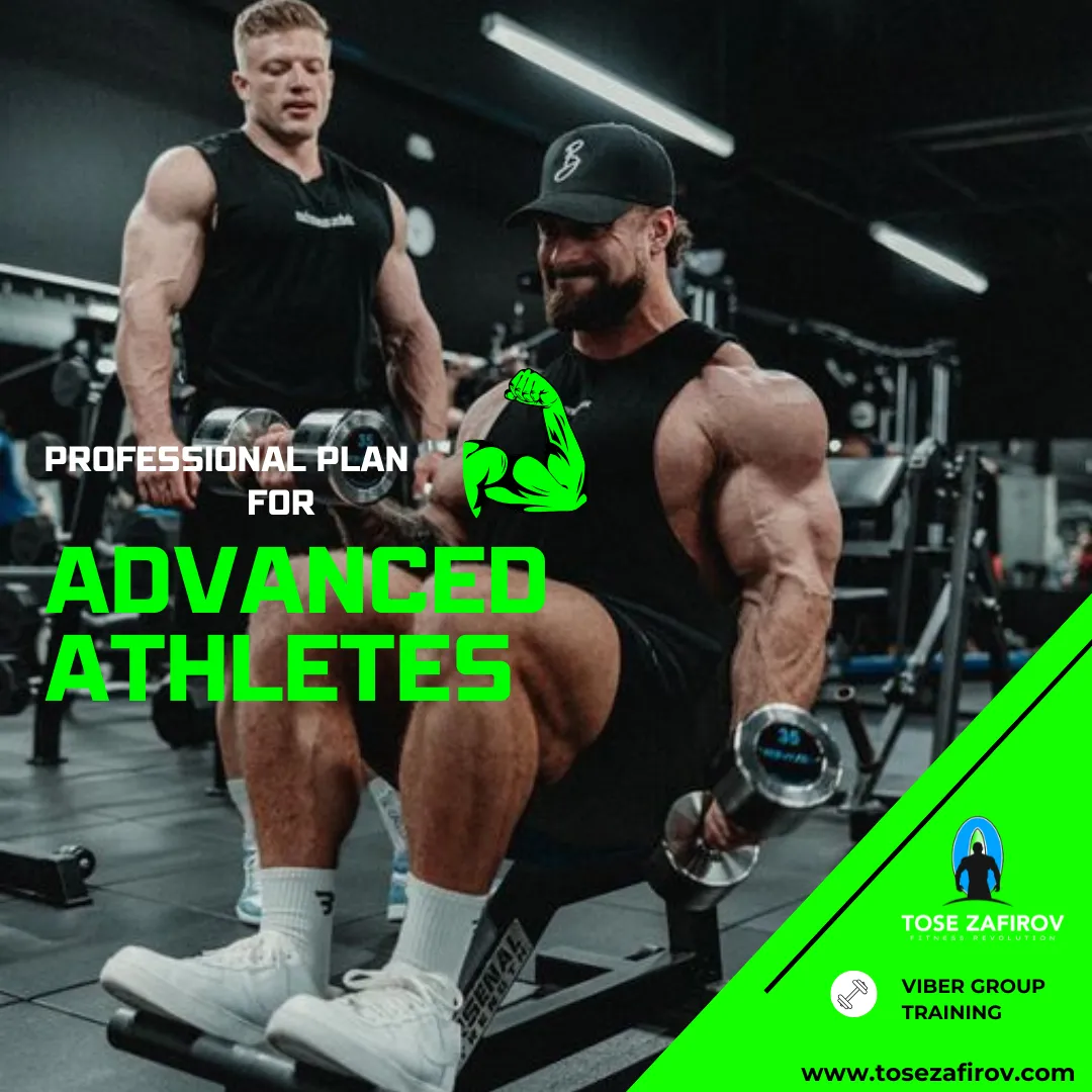 Професионалниот план за напредни спортисти е специјално развиен план за тренинг за искусни спортисти кои веќе имаат солидна основа и сакаат да ги подигнат своите перформанси на следно ниво. Оваа програма е дизајнирана да ги предизвика вашите граници, да го интензивира напредокот и да обезбеди резултати кои се видливи и мерливи.